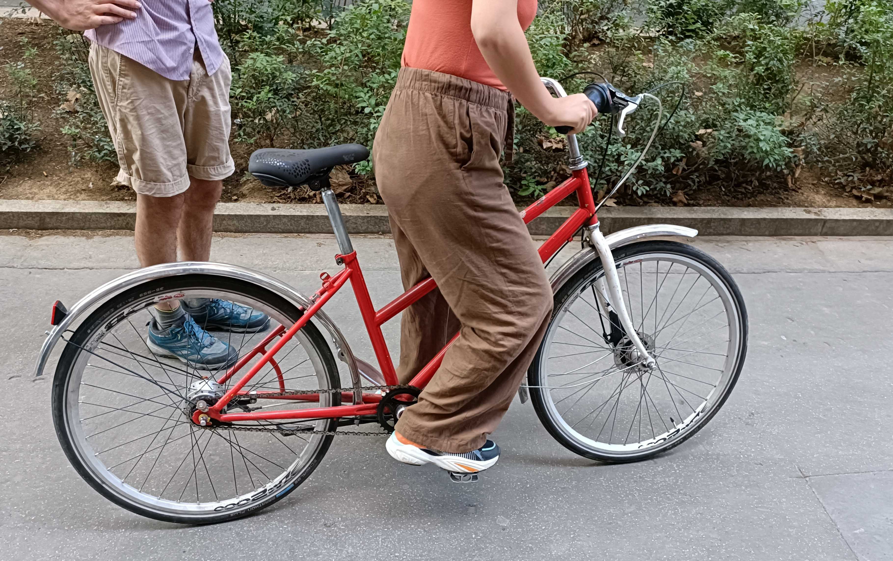 Apprendre à connaître votre vélo est tout aussi important pour avoir confiance une fois installé dessus. Pour ce faire, on vous conseille de marcher quelques mètres à côté du biclou.