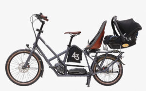 • De nombreux vélos cargo biporteurs, ayant une caisse à l’avant, proposent des adaptateurs dédiés pour venir clipser un maxi cosy à l’intérieur, comme vous le feriez avec une poussette