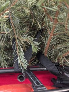 Sapin naturel après les fêtes, direction la zone de collecte. L’installation a pris ses bonnes 5 minutes : passer les sangles autour du sapin sans se prendre des épines dans les yeux, c’est tout un art. Mais une fois calé et sanglé, 10 minutes de trajet sans broncher. Ultra stable. Bon, on ne va pas se mentir : ça attire les regards. Mais quel plaisir de voir que ça fonctionne sur un vélo normal.