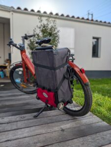 RAS, ça fonctionne parfaitement. La Bakkie s’installe sans problème sur le porte-bagage, et je n’ai pas été gêné en pédalant malgré le gabarit de la sacoche. C’est idéal pour prendre le train : on plie le vélo, on garde la Bakkie avec ses affaires, et on monte dans le wagon.