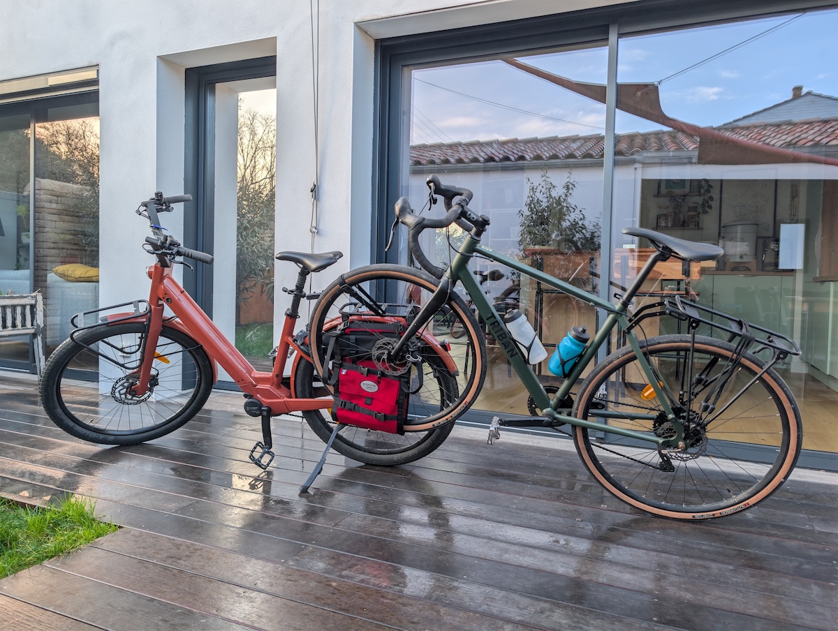 Solution : je suis parti avec mon Moustache Lundi 27, le vélo gravel Triban GRVL 120 remorqué via la Bakkie. Arrivé à la gare, mon ami a pris le gravel, j’ai récupéré sa valise dans la Bakkie, et on est rentrés ensemble à vélo.